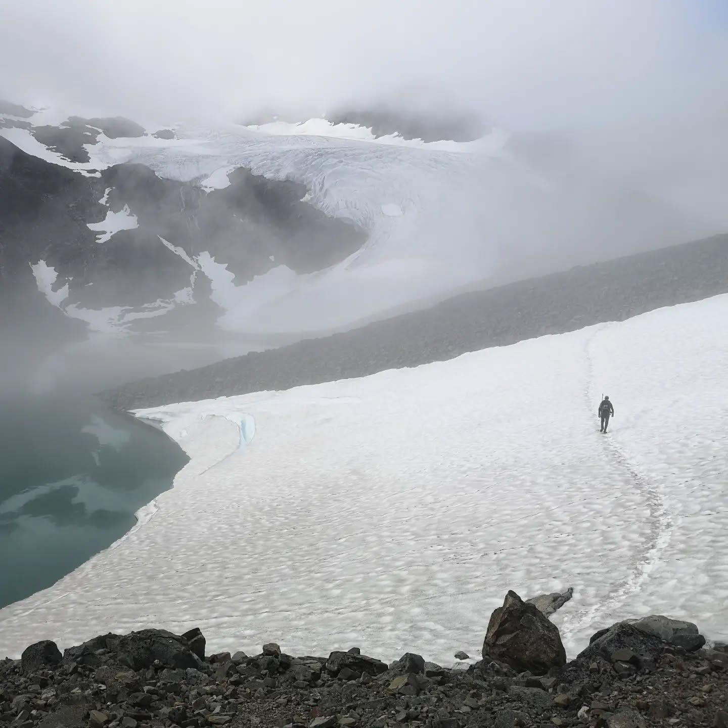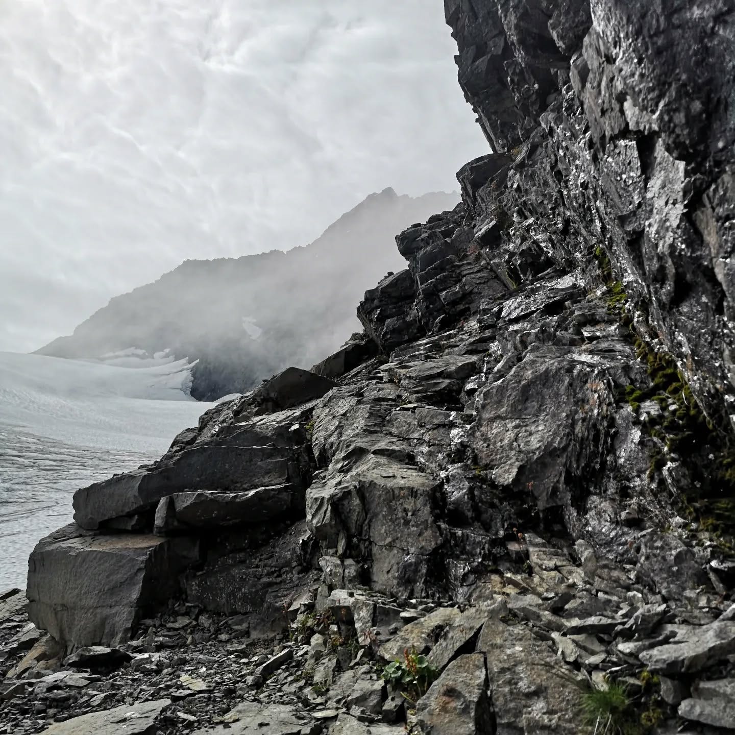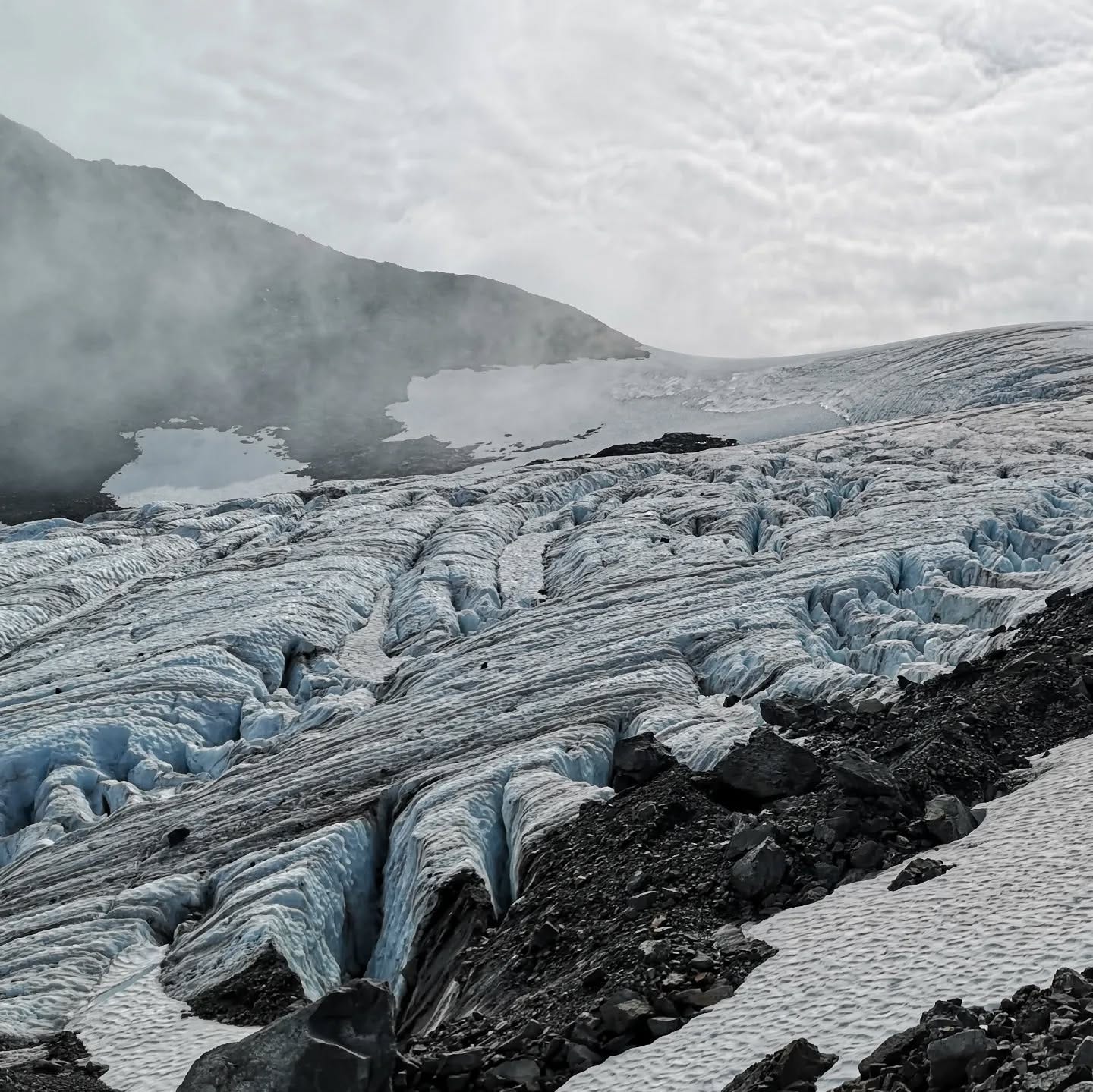 Day 3 of 6. Part one. From Tarfala up another unmarked path over the side moraine of a glacier over lose rocks. The crux to reach the pass was either walking over the side of the Glacier or scrambling around an exposed ledge. We are not equipped or trained for glaciers, so we scramble. This pass can only be crossed with good weather conditions and we got lucky. The views just kept getting better.